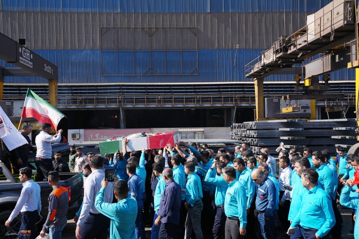 غریو "لبیک یا زهرا(س)" و "سلام بر شهید" کارگران فولاد را به صلابتی دیگر پیوند داد؛ صلابتی از جنس فولاد و ایمان.