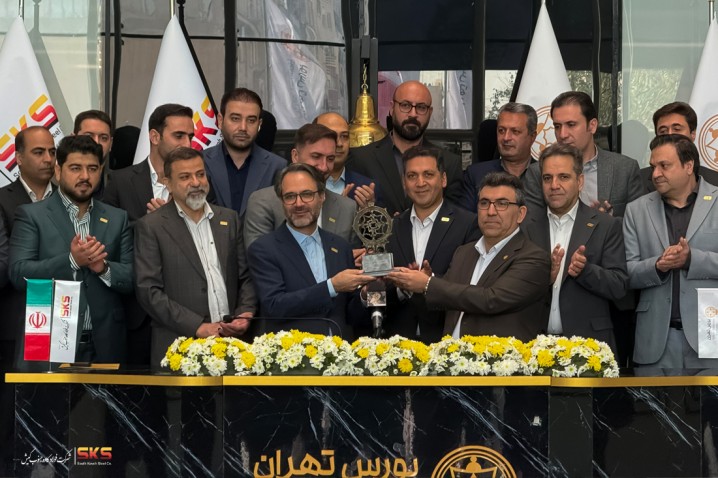 اهدای تندیس به "فولاد کاوه جنوب کیش" از سوی مدیر عامل بورس تهران